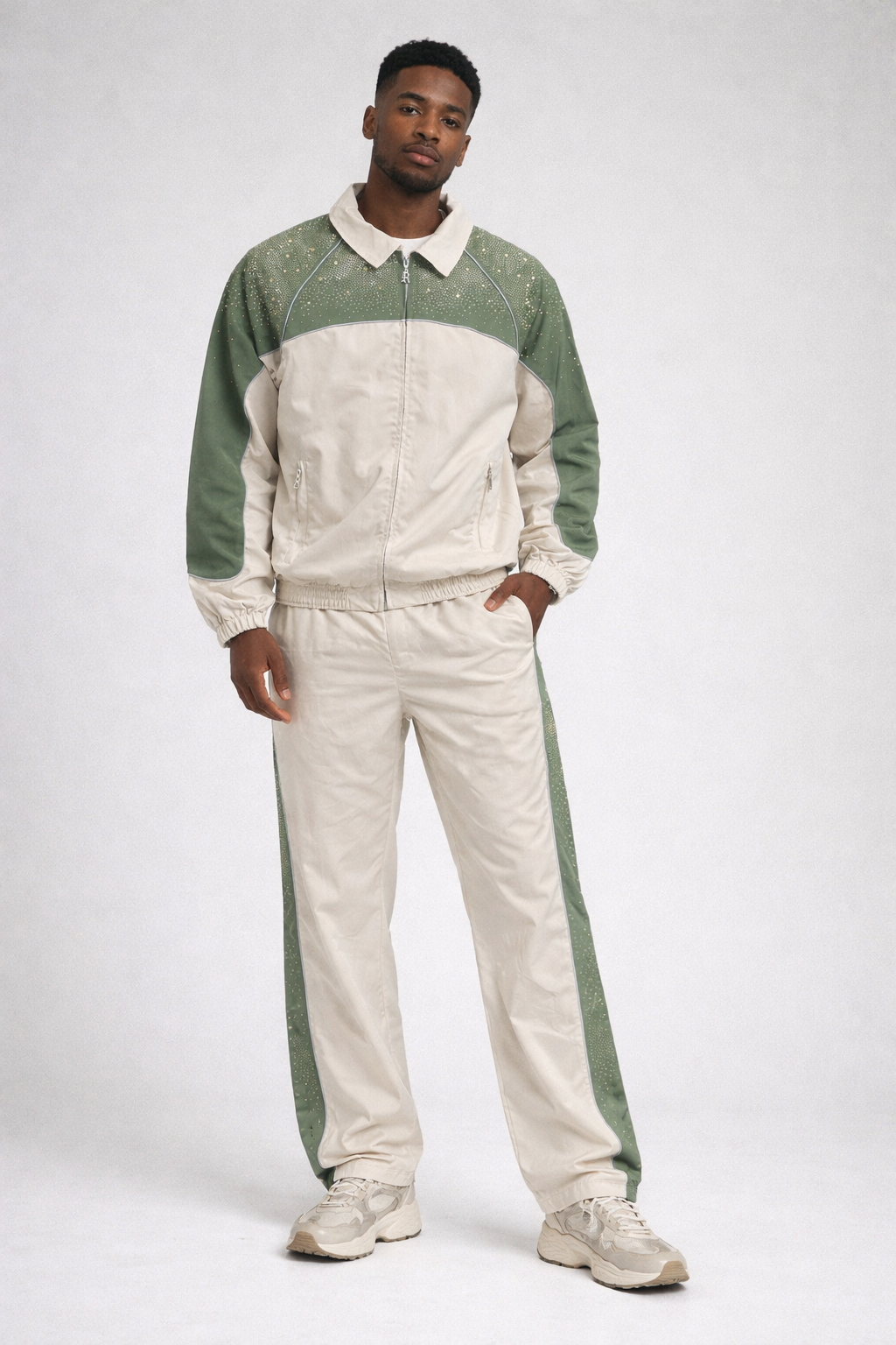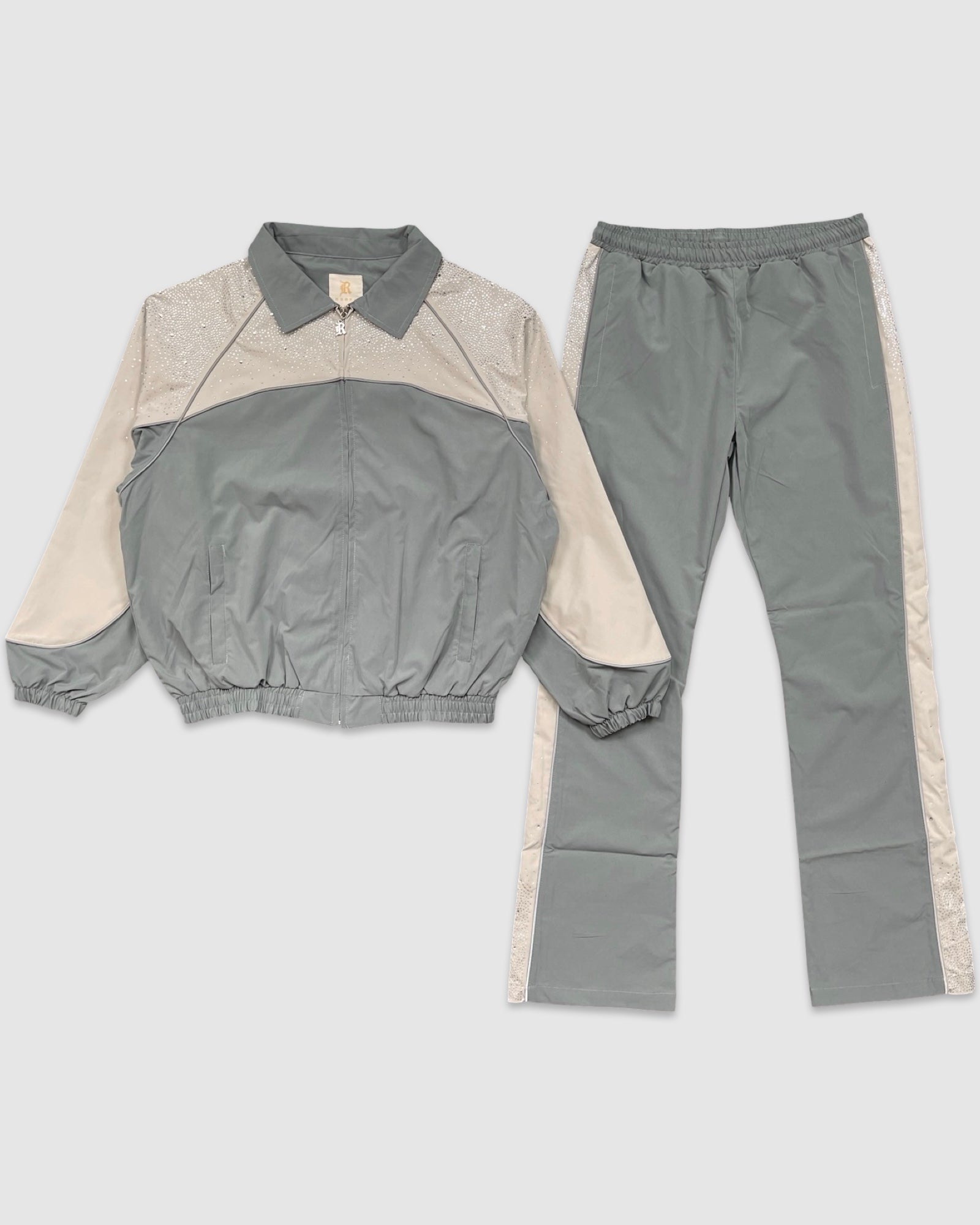 REB-34821SET-Rhinestone Nylon Tracksuit