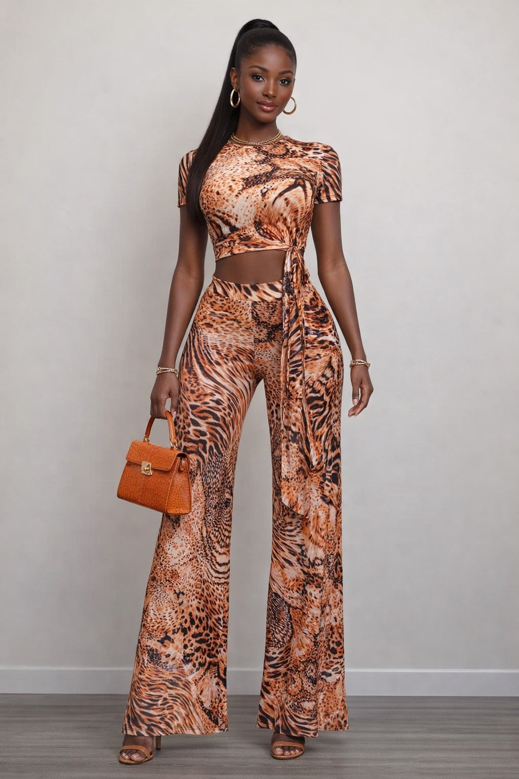 AST13946P - LEOPARD PRINT SS CROP TOP & PANTS SET