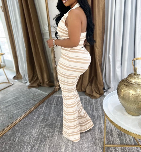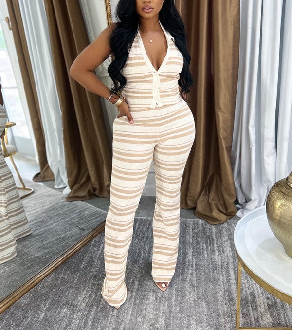 ST5021P - JACQUARD COLLAR HALTER BUTTONS TOP & PANTS SET