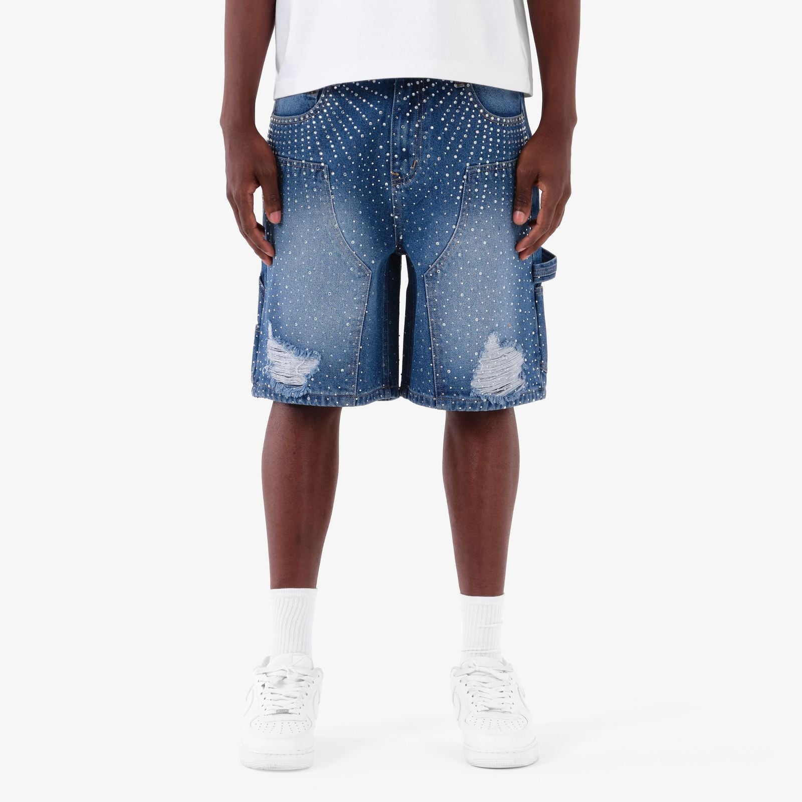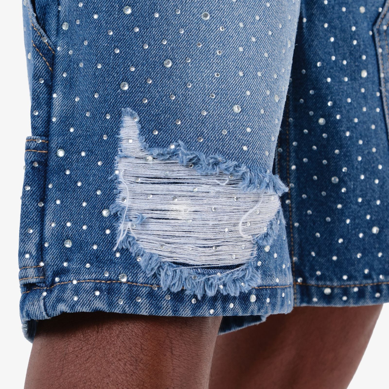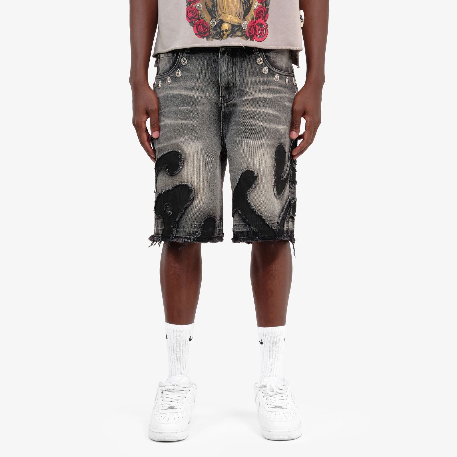 CPR-61P10-Vanity Stone & Emb Jean Shorts