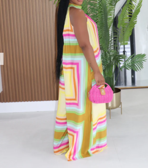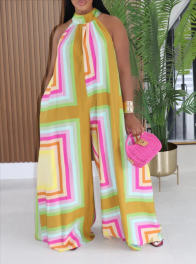 DD8105P - MOCK NECK SLEEVELESS PRINTED JUMPSUIT